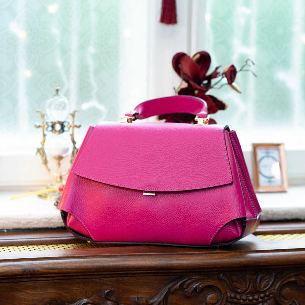 Textura pielii, delicată și rezistentă, conferă un aspect sofisticat și o durabilitate ridicată, ceea ce face ca poșeta Aria să fie nu doar frumoasă, ci și practică pentru utilizarea de zi cu zi. Forma structurată asigură păstrarea conturului său elegant, iar nuanța vibrantă de fucsia o transformă într-un accent cromatic ideal pentru a evidenția chiar și cele mai simple ținute.