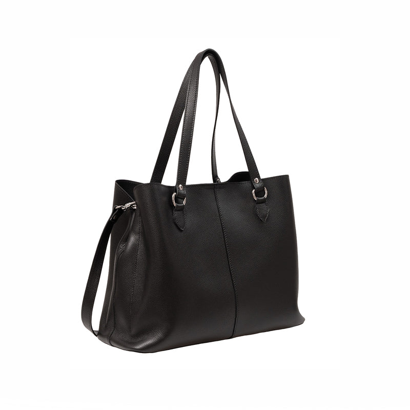 Cu o formă clasică, dar modernă, Marina se integrează cu ușurință în ținutele office sau casual, fiind suficient de încăpătoare pentru a-ți organiza obiectele personale esențiale. Datorită celor două mânere și a curelei de umăr detașabile și reglabile, poate fi purtată fie ca geantă de mână, fie ca geantă de umăr, adaptându-se nevoilor și stilului tău.