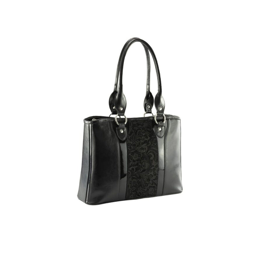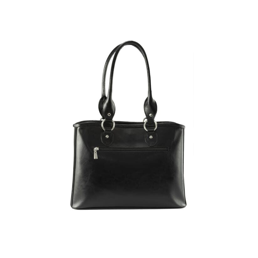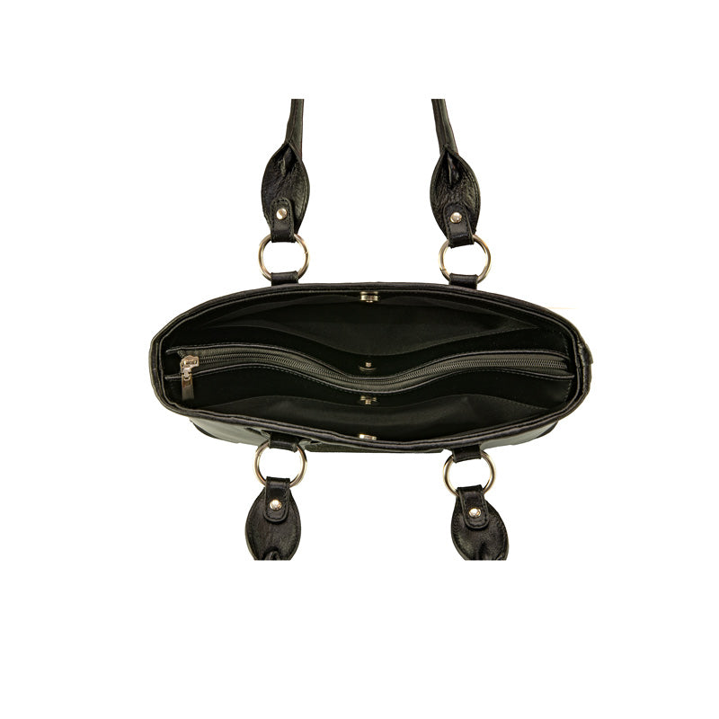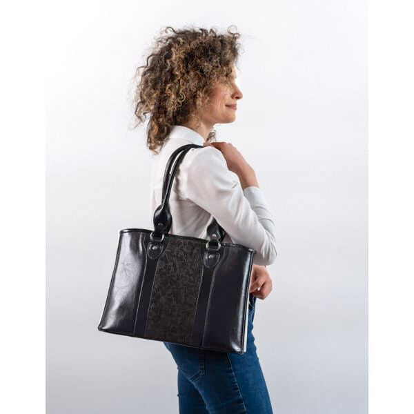 Natasha este o geantă sofisticată, realizată din piele naturală neagră, cu inserții din velur și un imprimeu rafinat, care adaugă un plus de stil oricărei ținute. Practică și elegantă, este accesoriul perfect atât pentru birou, școală sau întâlniri, cât și pentru ocazii speciale.