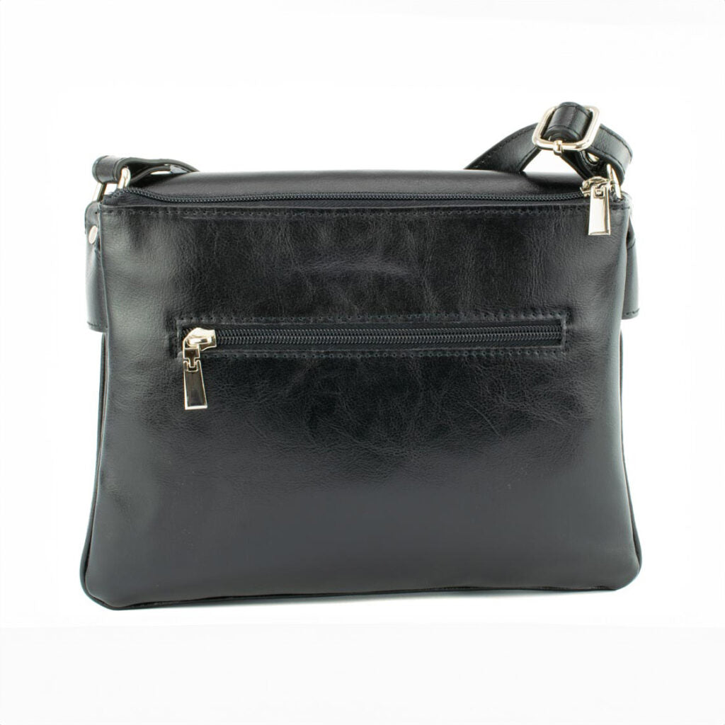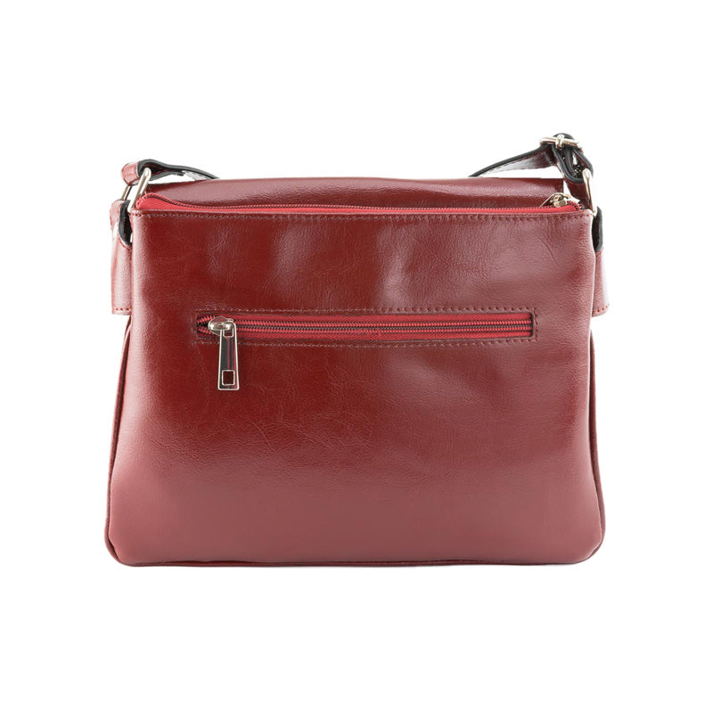Cureaua de umăr, reglabilă și realizată tot din piele naturală, asigură confort la purtare, iar compartimentarea atent gândită permite păstrarea obiectelor esențiale într-un mod organizat.