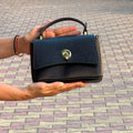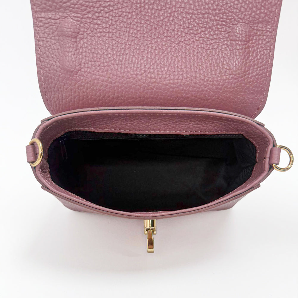 Designul său minimalist este pus în valoare de închiderea metalică rotativă aurie și de mânerul fix, la care se adaugă o curea de umăr detașabilă pentru un plus de versatilitate.