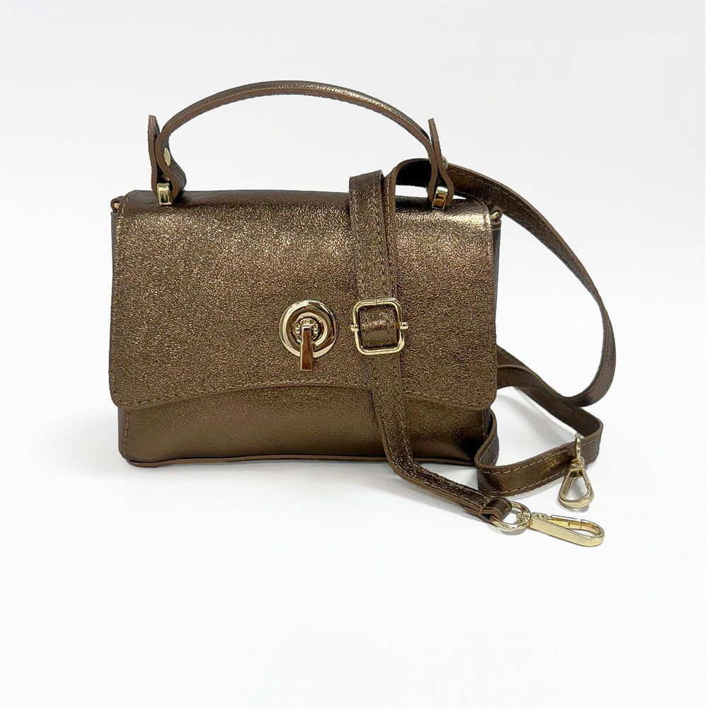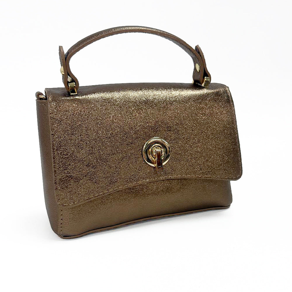 Tiana este poșeta ce adaugă un plus de glam oricărei ținute, fiind realizată din piele naturală texturată cu finisaj metalizat auriu. Elegantă, compactă și sofisticată, această poșetă este perfectă pentru ocazii speciale, dar și pentru a transforma un outfit simplu într-unul remarcabil.
